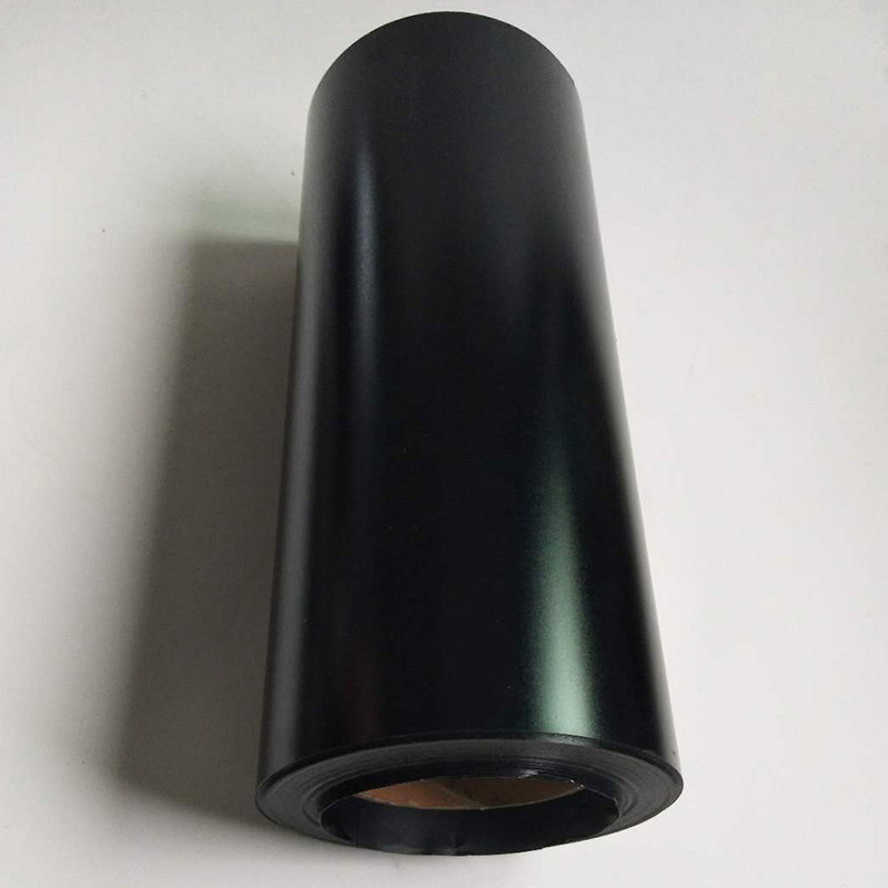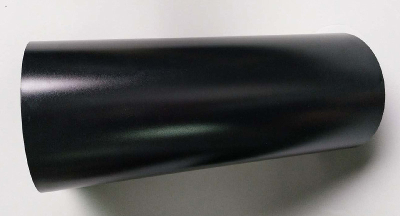 黑色环保阻燃PC薄膜:是黑色、一面中砂、另一面哑光的阻燃PC薄膜,UL94防火等级达到VTM-0或V-0,薄膜具有成形性好、机械性能优异、在高温下有较好的尺寸稳定性及高阻燃等级,较适于供电器、磁盘驱动、母线、电视/显示器、PC板和营业设备的绝缘运用。